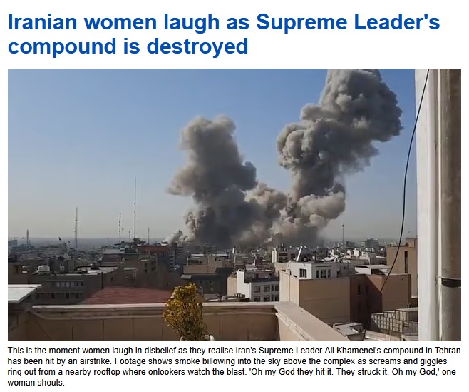 Iranska gymnasieelever firar och säger "jag älskar Trump" medan bomber faller i Teheran.