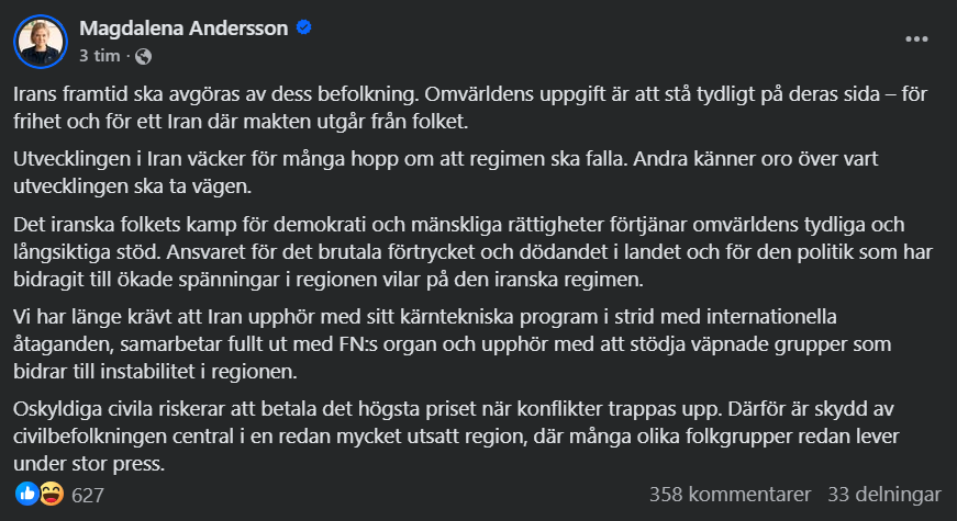 >Vidare skriver Trump att attackerna mot Iran kommer att fortsätta.>”Oavbrutet under veckan eller så länge som krävs för att uppnå vårt mål om FRED I HELA MELLANÖSTERN OCH, JA, I HELA VÄRLDEN!”. der könig