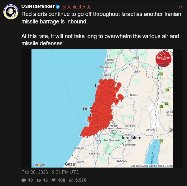>>219610861Israel och USA har begränsat med ammunition för sina luftvärnssystem. Relevant artikel:https://www.ft.com/content/c2cfb9e5-9ef7-4448-a5a1-414c996d7093