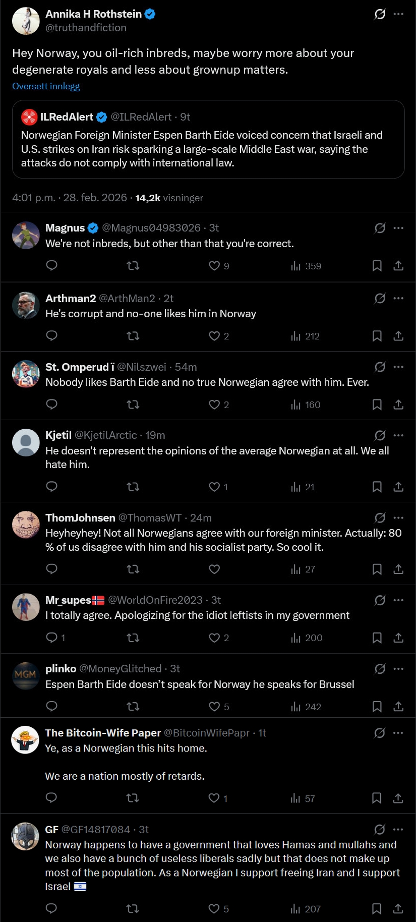 >>219610857>våre folkevalgte representanter ikke folkethvorfor spytter disse klovner på norge for å vinne noen flink goypoeng på x? er det botter