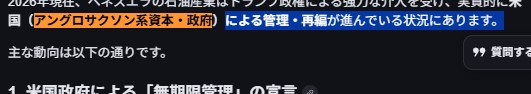 因みにな…膨大な石油貯蔵量を有し アングロ資本に介入されて無い イラン や ベネズエラ の石油みたいなエネルギーを膨大な量を必要とする AI産業(次世代ナンバーワンの主要インフラ)を支配してるのも…アングロ資本やからなうっしっしっし