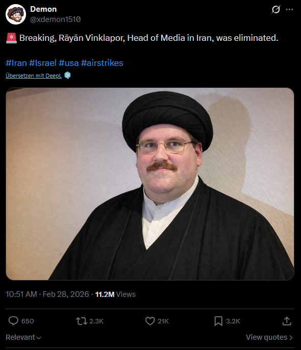 >>219652803niemand umkreist den alle hassen ihn>>219653080>dass man solche Kritik noch öffentlich äußern konnte, ohne damit rechnen zu müssen, dass einem die Mannen des Innenministeriums die Tür eintreten.darfst diese kritik durchaus angstfrei äußern schwurbli, darfst nur nicht den holocaust leugnen