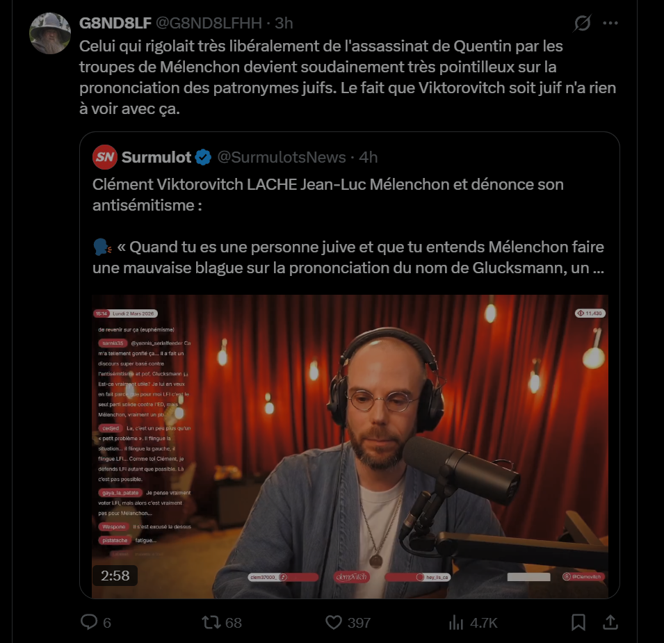 >POV: tu as renversé et écrasé en direct un homme qui sautait sur ton pare-brise. Es tu es ClavicularBien sûr je pense que tout le drama avec clavicular etc est un peu ridicule… mais le looksmaxxing est un mouvement intéressant et qui a de l’avenir