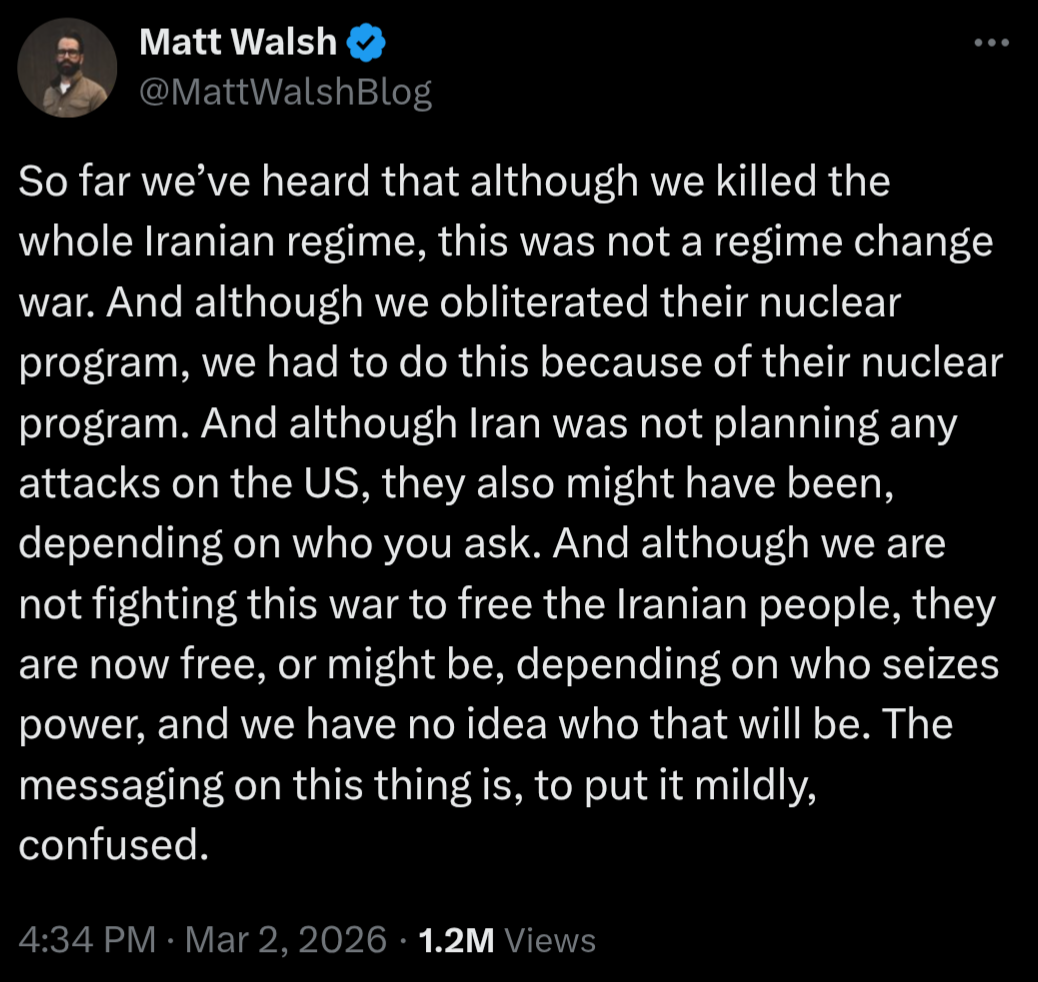 They also started taking heavy loases literally day one, and it only got worse from there. This leaf is really trying to push the narrative that the US has started a war that it has promptly regretted, but so far it really could not be going any better