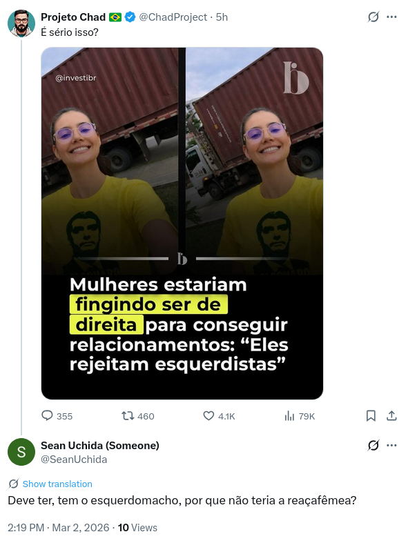 Reaçafêmeas opressoras enganando o miqueinhas patriota.