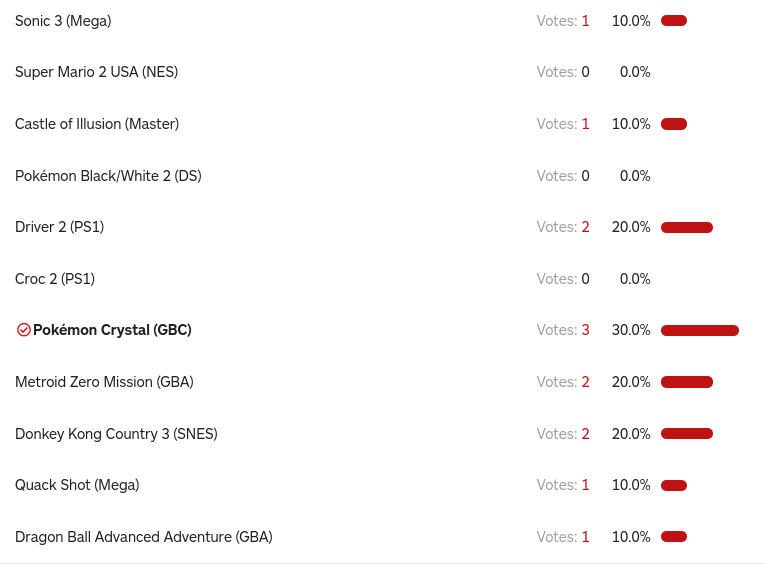 Acho que estamos na frente só temporariamente... Vão votar em outros joguinhos e algum outro vai ganhar... Mas eu fiz minha parte lel.