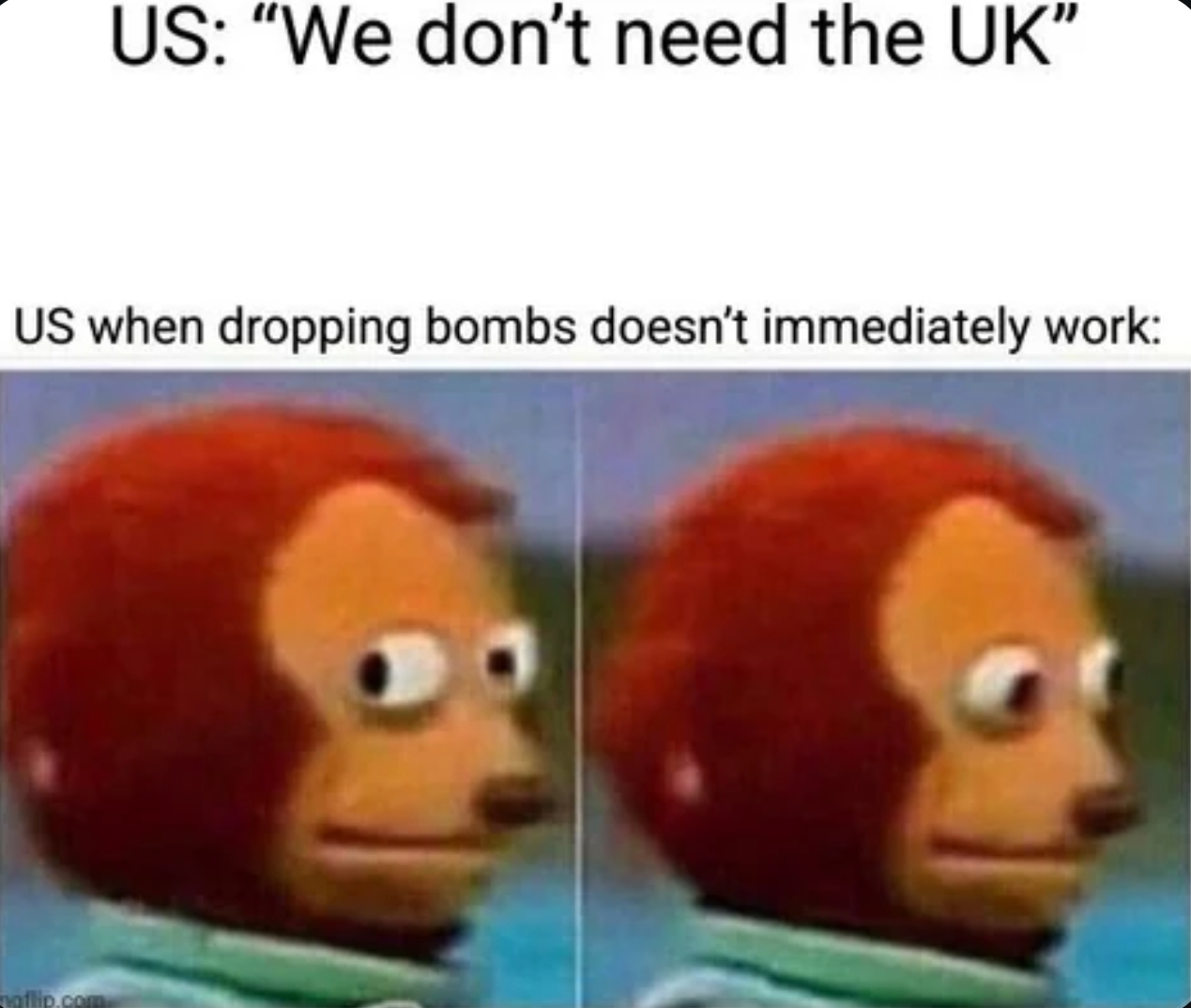 Wasnt it only a few months ago where they shat on our war dead? And now they expect us to join them in their retarded Israeli war? Fuck off