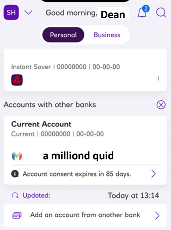 when i log into the bank app it doesnt even say a number. they just immediately call me to say sup boss?