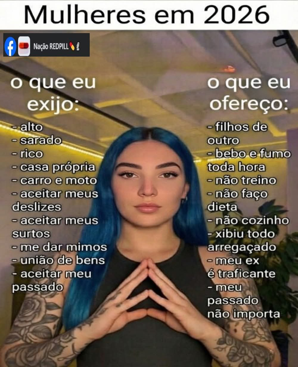 os homens são obrigados a andar na realidade desde cedo senão tomam no cuquem faz a vida da mulher fácil são os homens pensando em sexo, só que isso gera o efeito delas serem o grupo social que basicamente vive alienado da realidade (quase não enfrenta consequências, não tem compromisso, não é socialmente cobrada ter coerência, consistência, responsabilidade etc.)pra piorar, elas são emocionalmente instáveis e são naturalmente dissimuladas (a arma feminino não é o físico, mas a manipulação/dissimulação)mesmo tendo um monte de homem tonto, a multidão deles não é capaz de causar o mesmo estrago que elas causamas mulheres corrompem os ambientes onde entram, só ver que qualquer ambiente masculino muda se tem presença feminina, o politicamente correto começa ser instaurado e todo mundo começa a ser censuradopresença de mulher = homens deixam de se enxergarem como aliados/colegas e passam a se enxergar como competidores