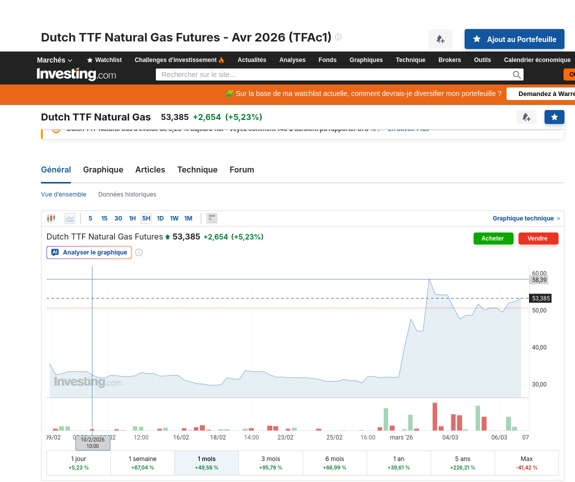 Le gas c'est aussi intéressant mais plus difficile à trouver, en Europe c'est là dessus.Beaucoup d'industries dépendent du gaz pour leur processus thermiques, comme tout ce qui touche au verre. La plasturgie un peu, la chimie énormément.https://fr.investing.com/commodities/dutch-ttf-gas-c1-futures