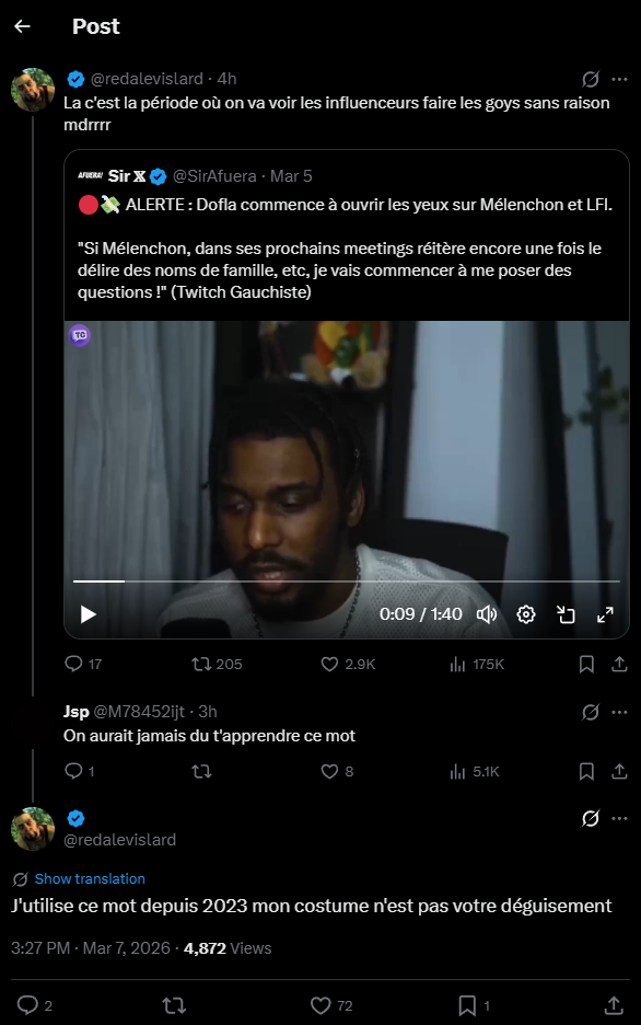T'as bien compris le message, hein sale pauv- euh, je veux dire cher citoyen averti ? LFI c'est des méchants qui aiment pas la France hein, c'est caca, faut pas voter pour. C'est du wokisme !Alors tu ferme ta gueule et tu votes RN comme un bon chien- euh je veux dire comme un bon rebelle antisystème informé, sinon tes patrons ils vont pas être contents du tout, enculé.