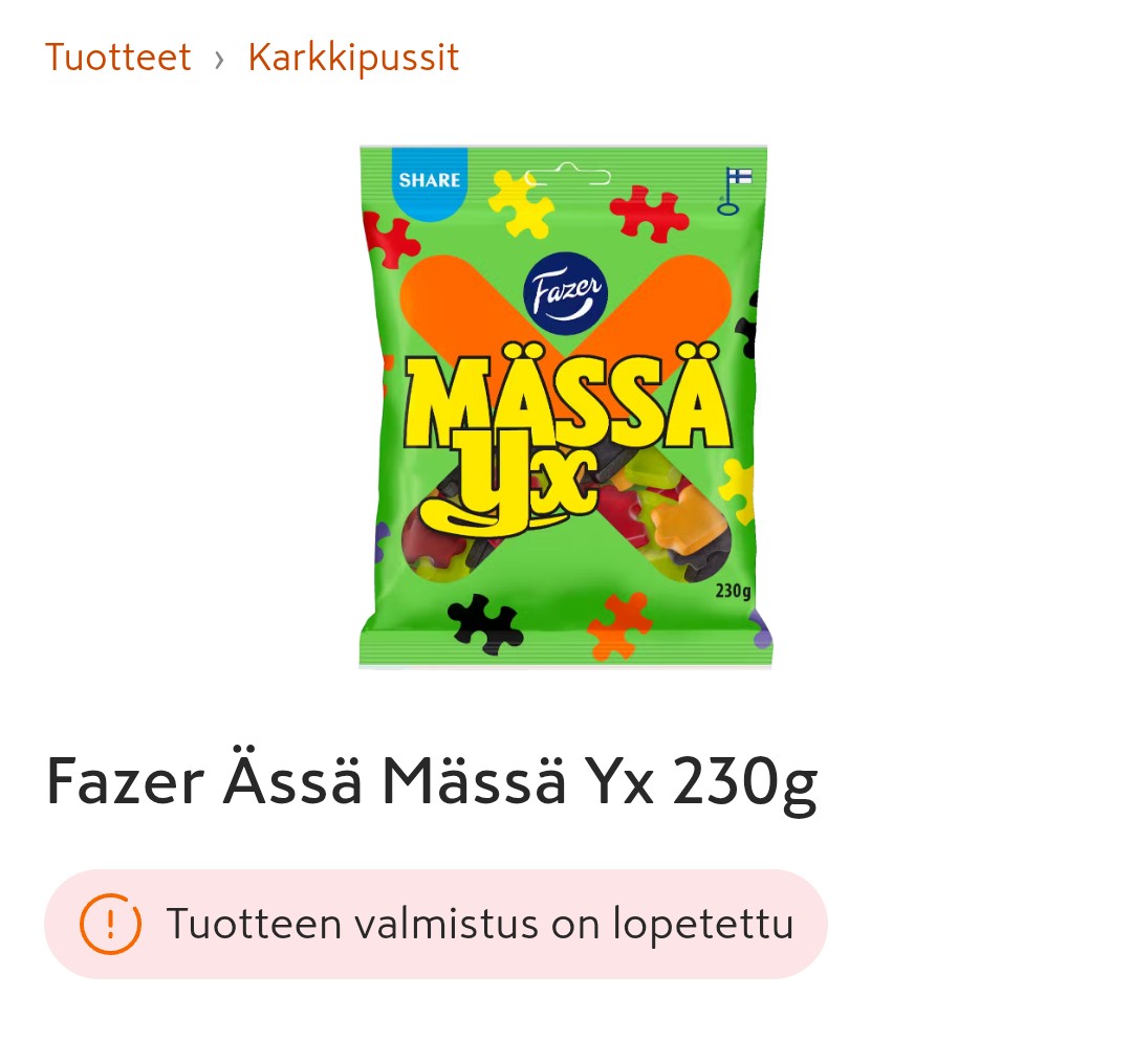 >>219737957Kaikki hyviä. Oispa ässämixi, nekin vaan maksaa nykyään melkein kolme egee per pussi