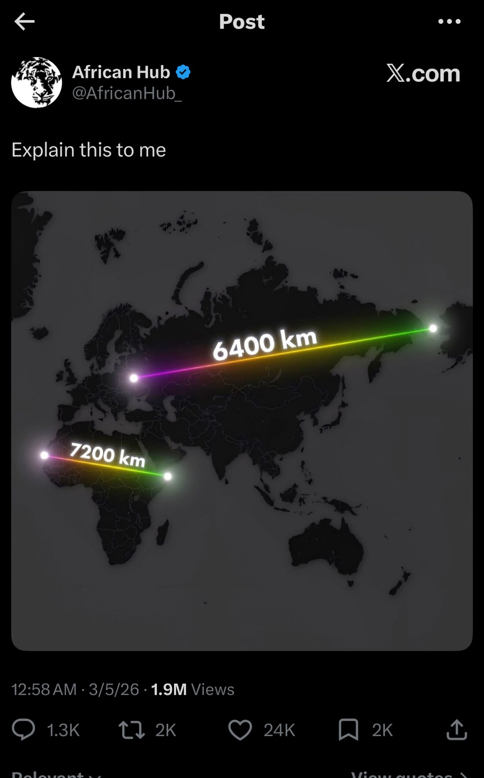 nah I call bullshit, Russia is clearly slightly wider than Africa in the real size of countries page and when you ask the question in spanish to the AI, you know a language that actual human beings speak, it tells you that Russia is wider than africa and the distance is 8,700 km