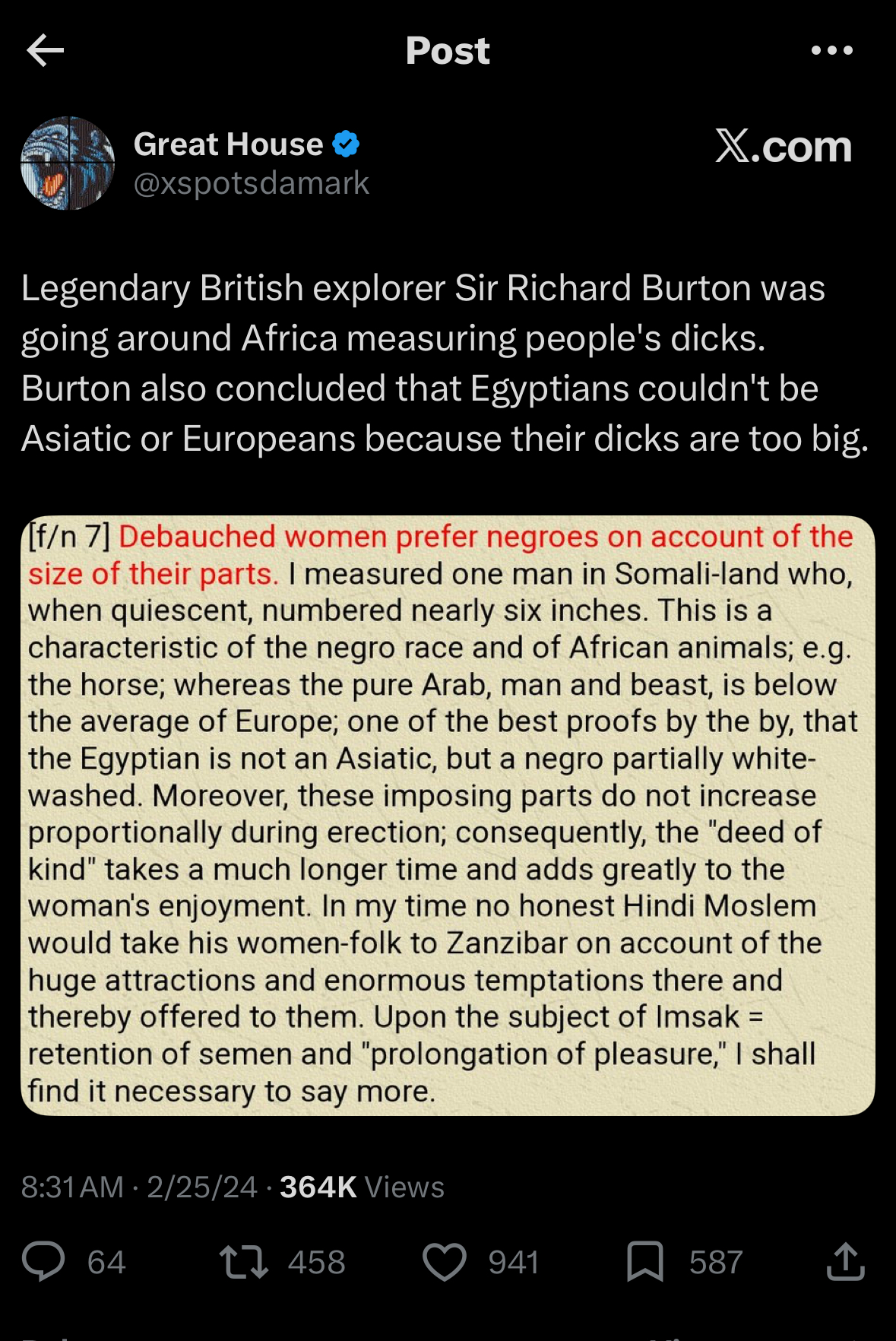Brown men can't go 5 seconds without thinking about white and black dicks.