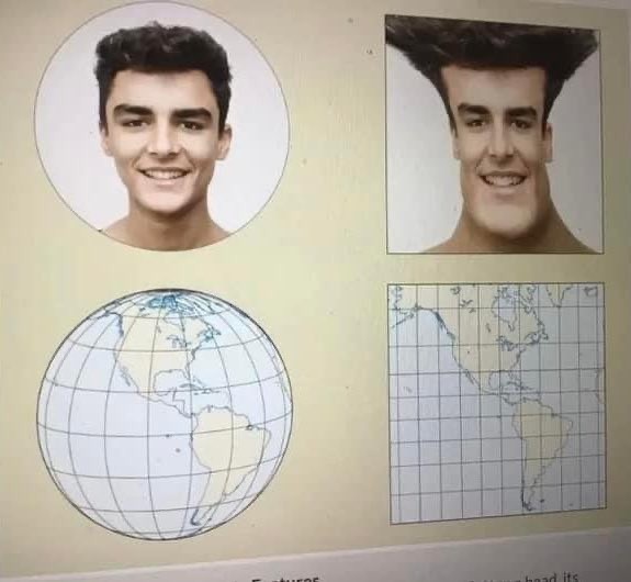 The earth is a globe (sphere) but maps are 2D and can't capture the curvature of a 3D ball so the edges get stretched out while the center is accurate