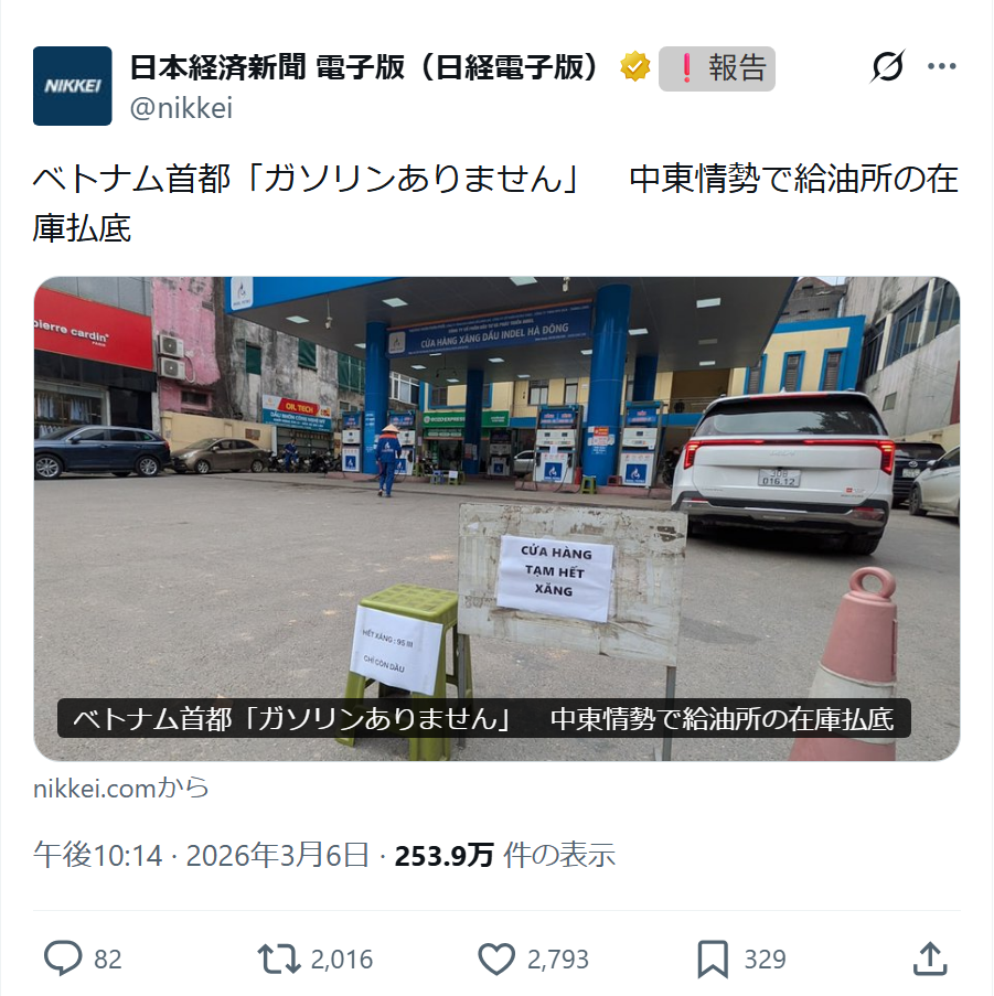 中国とロシアの船はホルムズ海峡を通過させてもらってるんだよね。日本政府がうまく立ち回ってれば、そこに日本の船も加われたんだけど、高市は馬鹿すぎてそこまで頭が回らず、とにかく習慣に従って強い側についてイランを非難したから、当然日本船も通行禁止ですわ。正直、この馬鹿が圧倒的に指示されてる理由が意味不明なんだよ。日本人が集団狂気に陥っているとしか思えない。