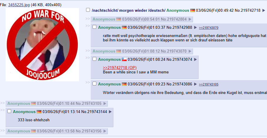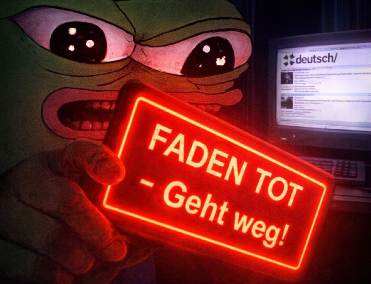 Ihr könnt die /nachtschicht/ endlich mal in /totschicht/ umbenennen. Hier geht schon lange gar nichts mehr.Und welchem Schlag von /deutsch/is haben wir das zu verdanken?Achja, dem da >>219743213und dem da >>219743086aber insbesondere dem da >>219742440Zeit abzuschlieBen.