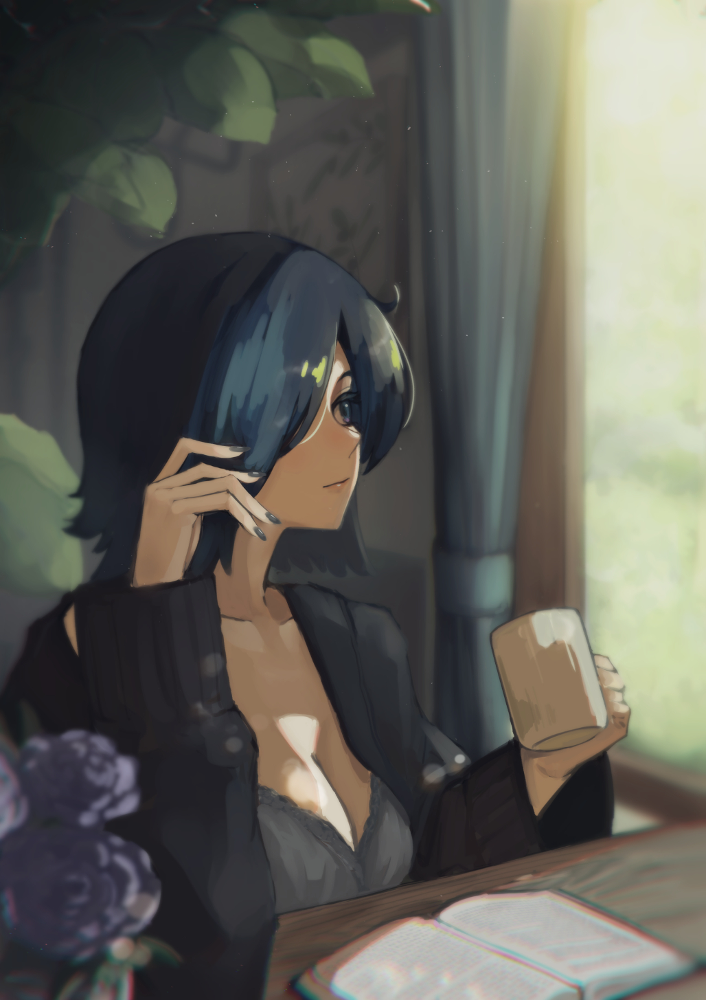 Looking out a big window at the snow and drinking coffee. Nice feeling.