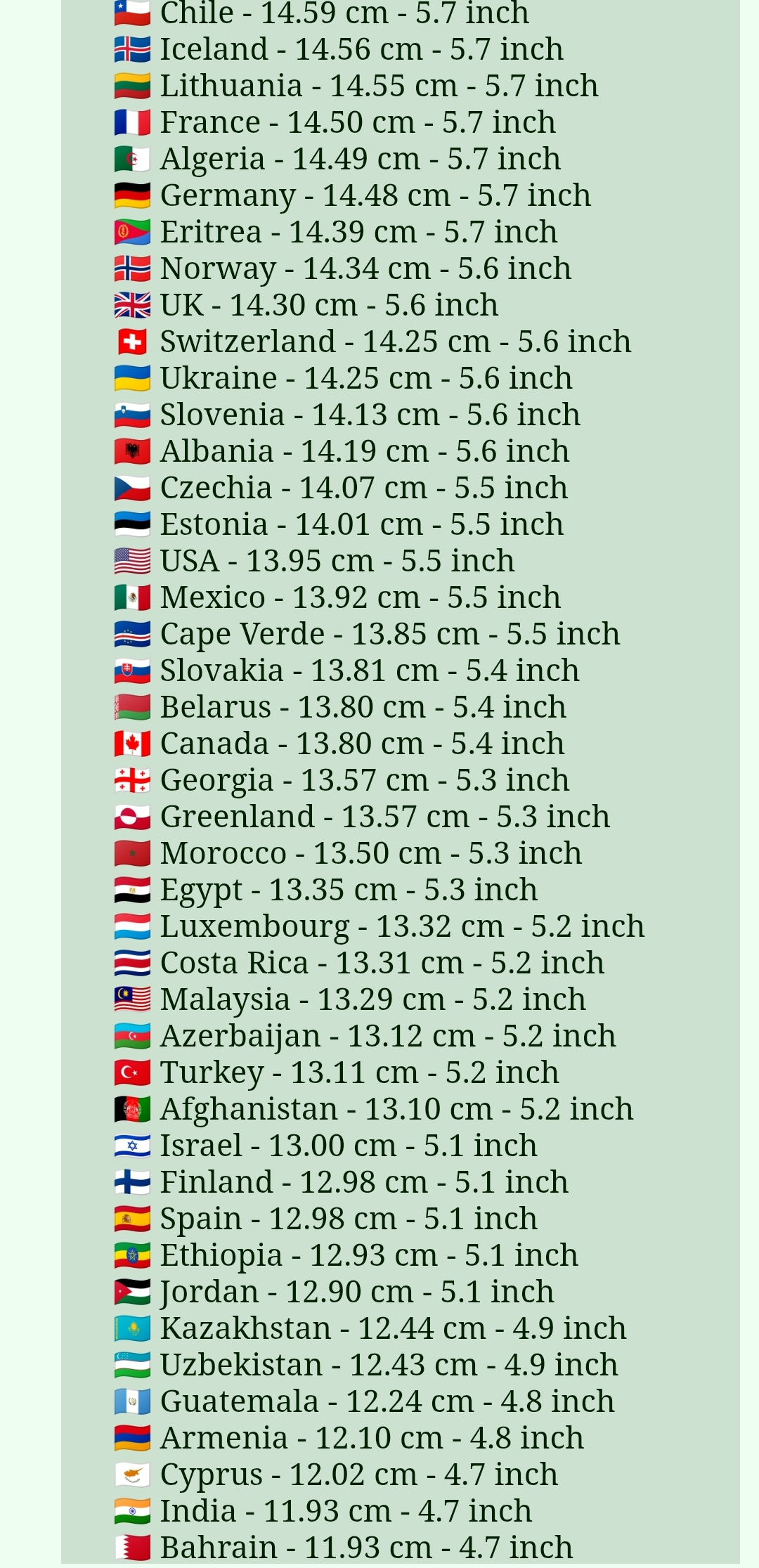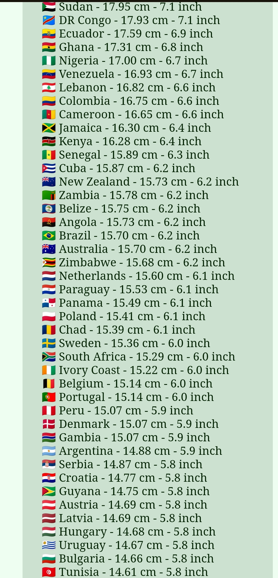 Average Erect Penis Size by Country 1/3