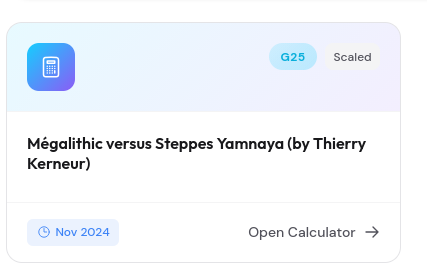 >>219808667yes, but these are also good>https://www.exploreyourdna.com/calculator/2/g25-calculatrice-standard-global25-par-davidski>https://www.exploreyourdna.com/calculator/5/g25-chalcolithique-squence-levantine