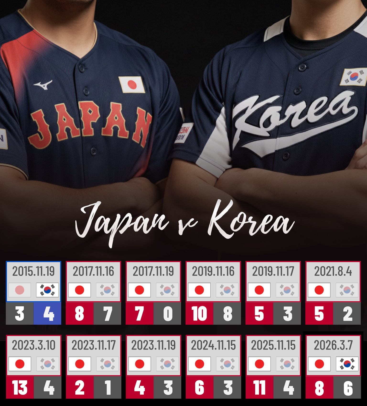 >>219803887A forced narrative from Korea performing better when facing Japan than when they faced other teams. Despite always being consider a lower ranked team since the 90s it was ahead in the head to head match record till some time around 2020s.