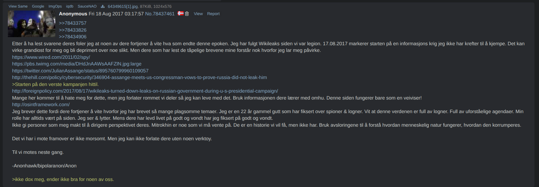 >>219816515>>219816766Sannheten er at du har levd i en fantasiverden de siste 10+ årene etter at du pådro deg rusindusert paranoid schizofreni etter flere års blandingsrusbruk i de formative tenårene dine.