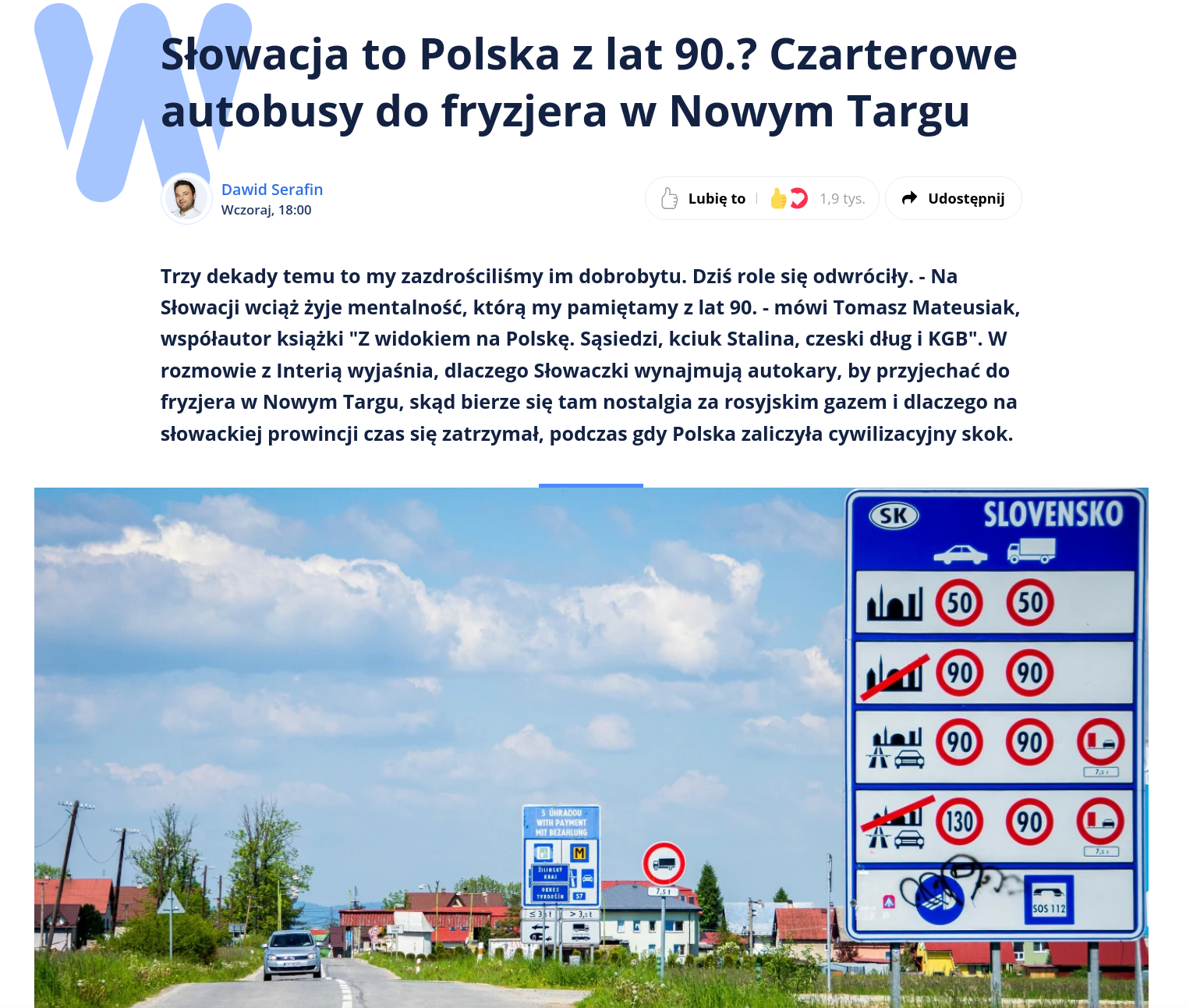 https://wydarzenia.interia.pl/kraj/news-slowacja-to-polska-z-lat-90-czarterowe-autobusy-do-fryzjera,nId,22616261>Właśnie tacy są Słowacy. Oni nie czują potrzeby ciągłego ścigania się z kimkolwiek. To fascynujące, bo u nich nie ma nawet tej wewnętrznej, sąsiedzkiej rywalizacji. W Polsce mamy ten specyficzny mechanizm: jeśli sąsiad kupi nowy samochód, to ten drugi - jeśli tylko ma ambicję i siły - zrobi wszystko, by nie mieć gorszego. Jeśli jeden położy nową kostkę na podjeździe, drugi weźmie kredyt, zadłuży się, ale też ją położy, żeby nie odstawać. Ta zazdrość, choć bywa męcząca, jest w Polsce potężnym paliwem rozwoju i napędza naszą gospodarkę.>Słowacy patrzą na to inaczej. Mogą cieszyć się, że sąsiadowi powodzi się lepiej, ale nie będą robić nic na siłę, by go dogonić, jeśli wymagałoby to zbyt dużego poświęcenia ich spokoju. Dla nich to po prostu bezsens. Są biedniejsi materialnie, ale być może bogatsi o ten wewnętrzny spokój.