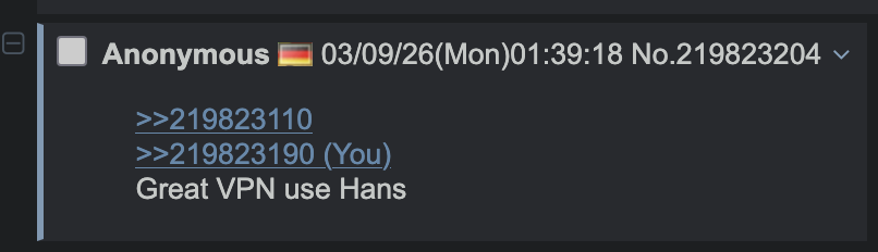 >>219823110>>219823190Great VPN use Hans