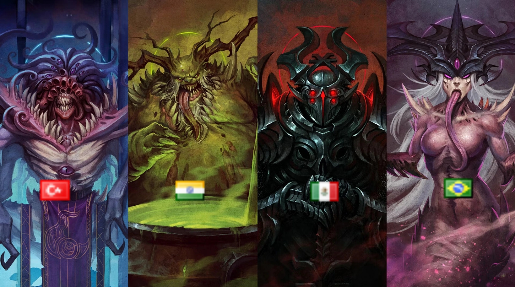 Tzeench must be IsraelNurgle must be IndiaKhorne can be Mexico, USA, RussiaSlaanesh can be Brazil, Thailand, Philippines or Japan