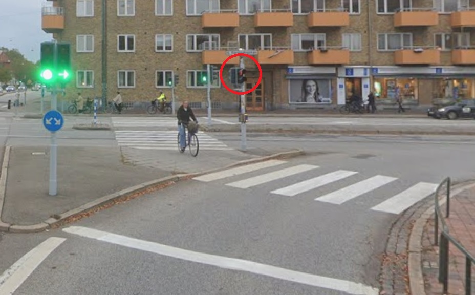 >>219829002>>219829003notera att sista korsning som cyklisten ska korsa har rött ljus (samtliga föregående ljus på övergångsställena är gröna) medans bilisten har grön pilkänns som att grön pil betyder att cyklisten ska stanna för migifall gröna pilen inte hade lyst så ska jag stanna för cyklistensen om cyklisten bryr sig överhuvudtaget är ju en annan fråga