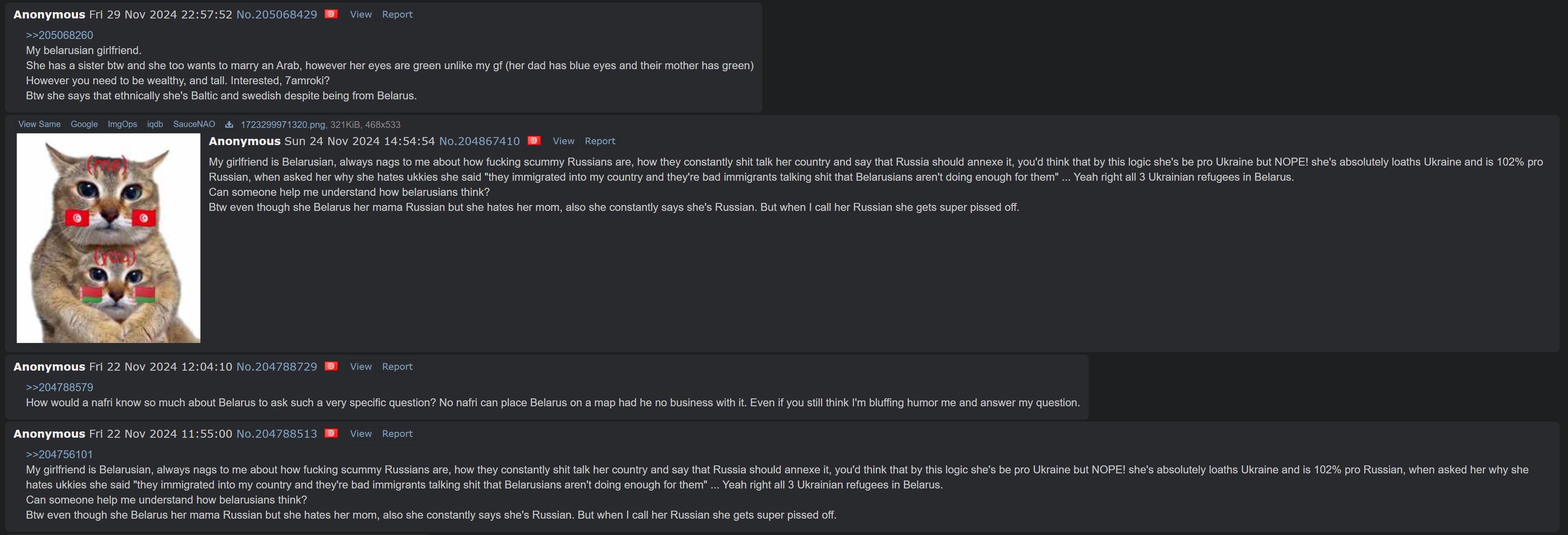 >>219844327Broke up. Need me a new one.>>219844261Would trade you a truckful of Tunisian women for one Belarusian woman.