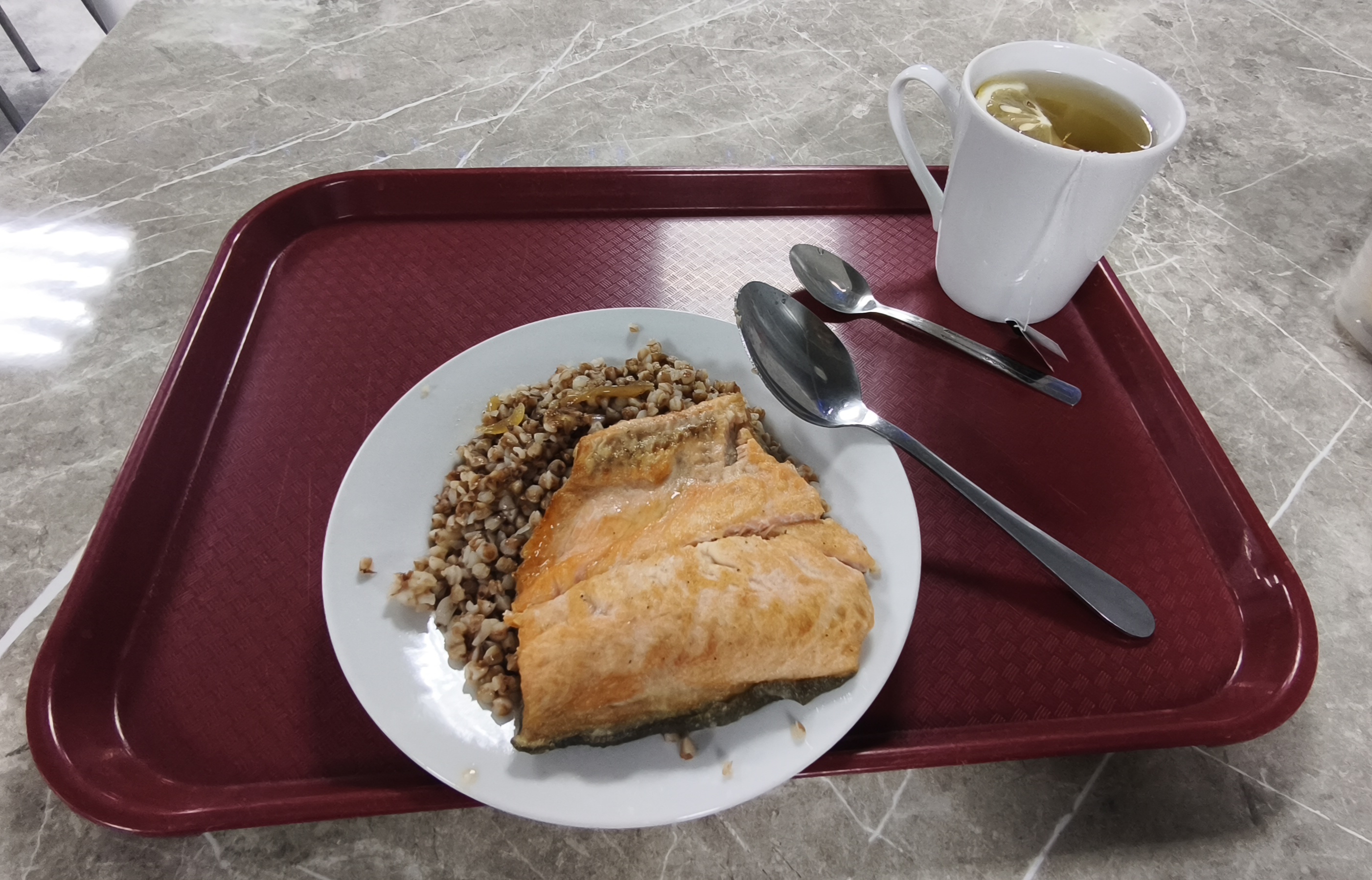 >>219848987Its grechka with fried red fish and fried pork