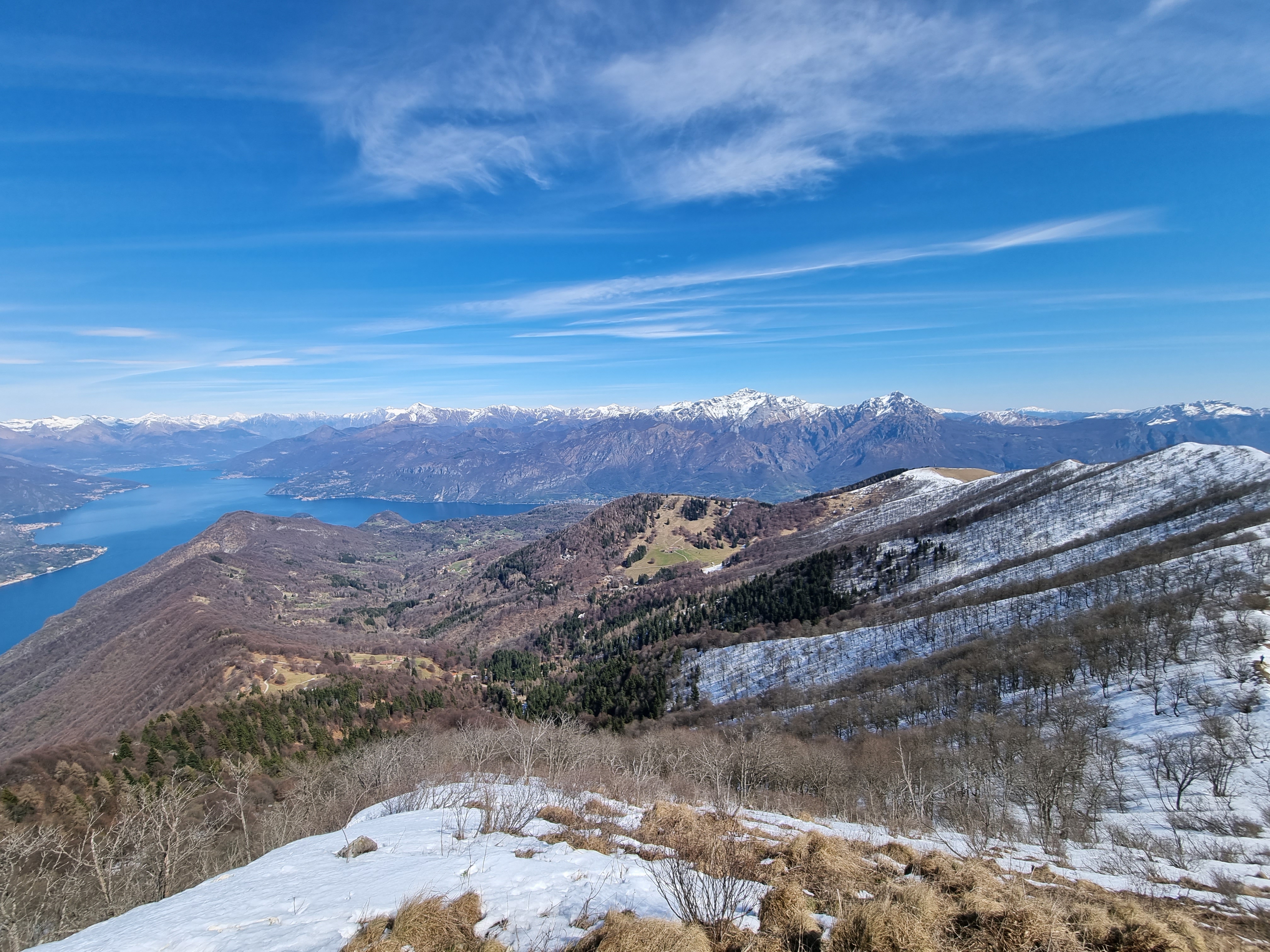 almost exactly 10 years ago, while on my way to the Intelvi valley for the church community trip, i looked for the first times at the wild slopes of Monte San Primo and dreamed of climbing off trail one of its northern ridgesso, nearly 10 years later i tried aaaand i failed miserably due to a combination of slippery mud, too much snow and too little time. so, i had to return yesterday using the regular trail and finished the jobthis means: FLAG DUMP, featuring two different trips close in time(flag not related btw, pic was taken in Argegno not Como)