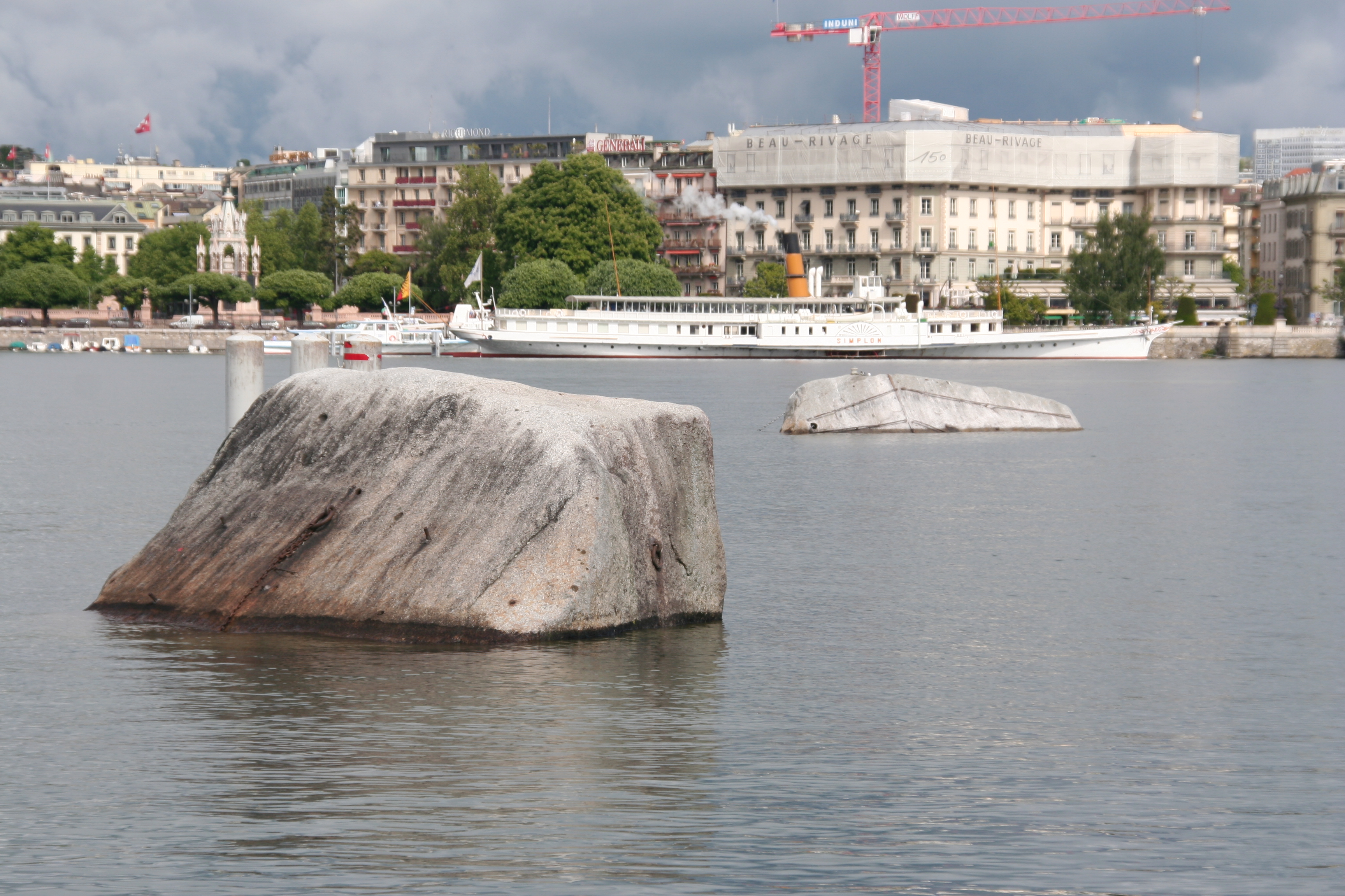 geodesy fact: since Switzerland doesn't have a sea level, all elevations are officially measured from the level of Lake Geneva at this rock (plus the elevation difference with the sea level at Marseille)