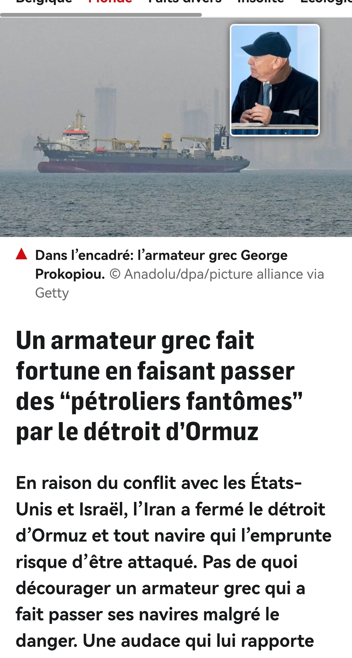>>219858019Greek shipowner makes a fortune by sending “ghost tankers” through the Strait of HormuzDue to the conflict with the United States and Israel, Iran has closed the Strait of Hormuz and any ship passing through it risks being attacked. This has not deterred a Greek shipowner who has sent his ships through despite the danger. His daring move is now paying off handsomely.