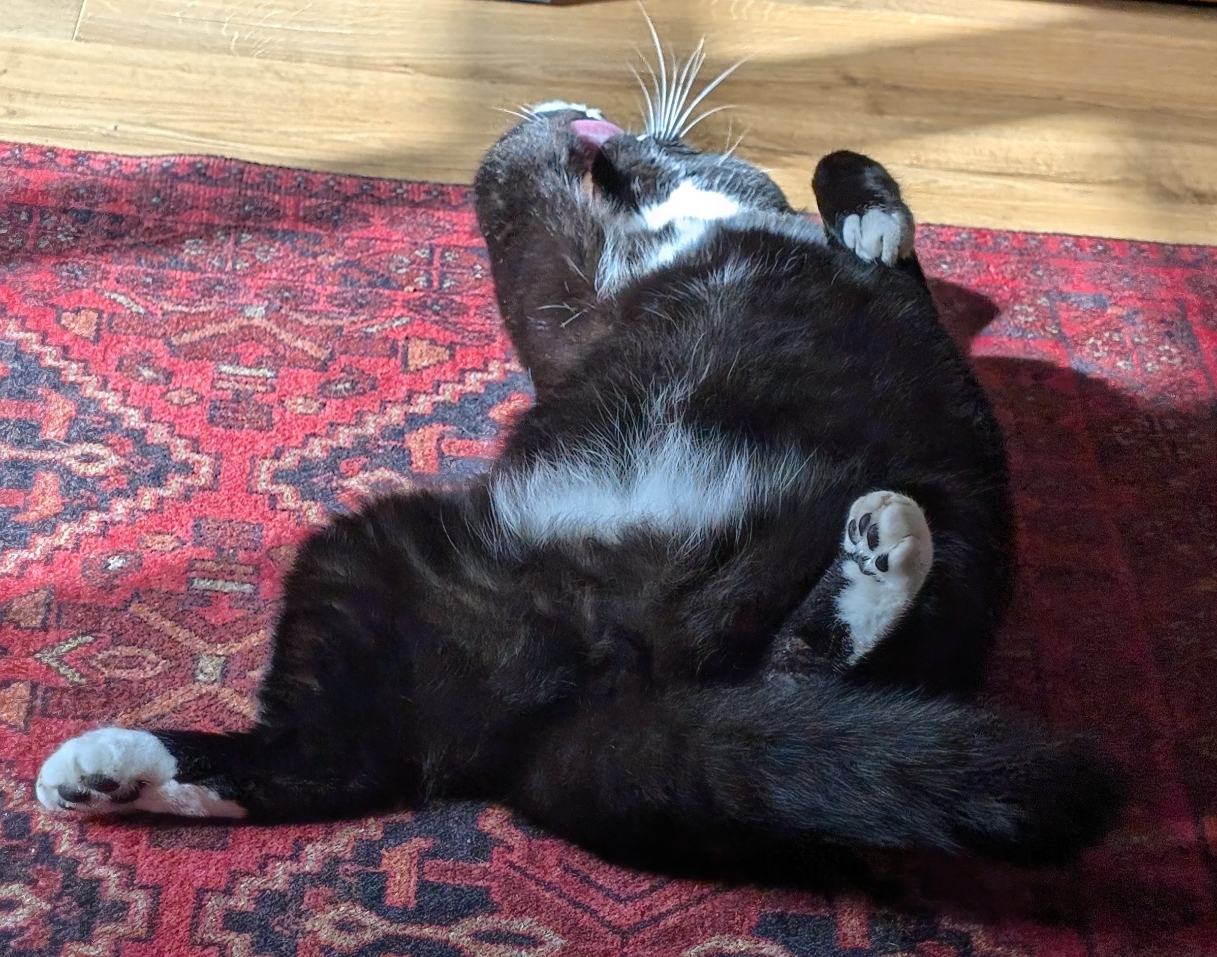 catberg's birthday today so i split a ribeye with him. cooked my half and cut his bit into little bites.