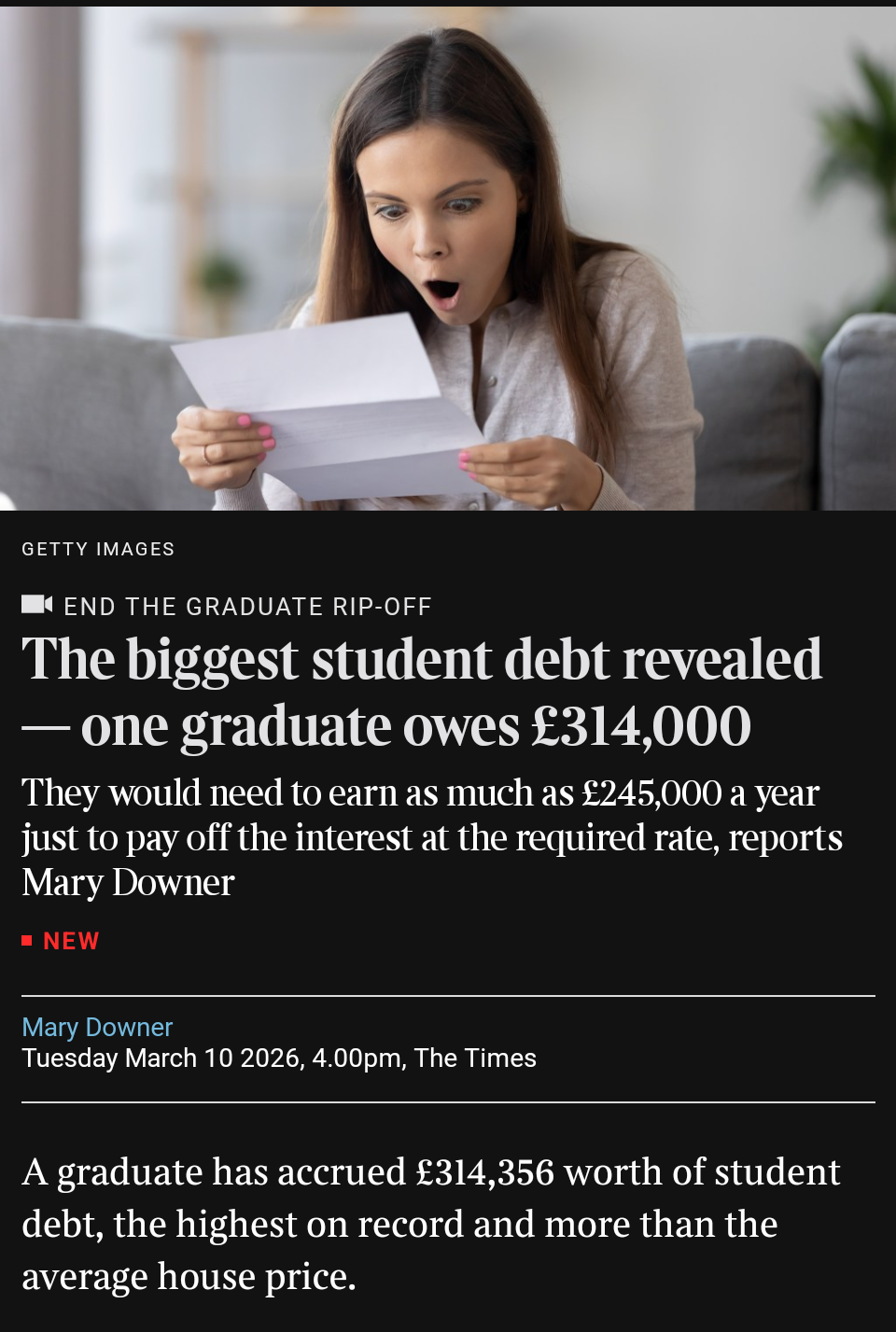 >>219862422I don't think people realised how much of a rip off it actually was, plus there was talk about the graduate premium meaning you'd still earn more over the long term against not going to uni but then AI happened and all the graduate jobs dried up and minimum wage rises meant the graduate premium has all disappeared for a lot of students, leaving them in a shittier position than if they hadn't went. Essentially these people were lied to and inb4 you say something retarded like, well they should have known better