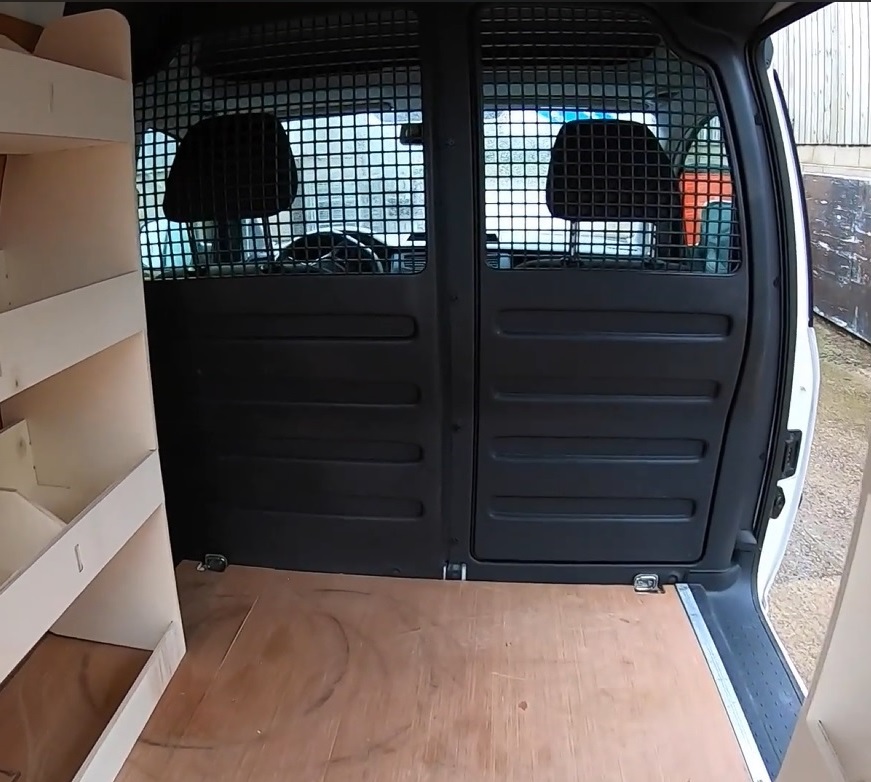 >Dør i skilleveggen så man kan ta med seg ekstra lange gjenstander. Fiffig.>Viser seg at det er et kosmetisk avtrykk av en dør og ikke noe man kan åpne.Kjeks hva.