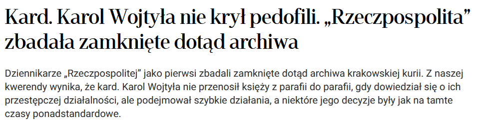 >>219928685Jak nie krył to po co w 1983 roku zmienił Kodeks Kanoniczny, który zmniejszył wagę przestępstw seksualnych wobec dzieci wewnątrz samego KK, a w 2001 wydał dekret "o ochronie świętości sakramentów" która nakładała klauzulę tajności na przestępstwa seksualne księży jak sam argumentował "sprawy te są objete sekretem papieskim"