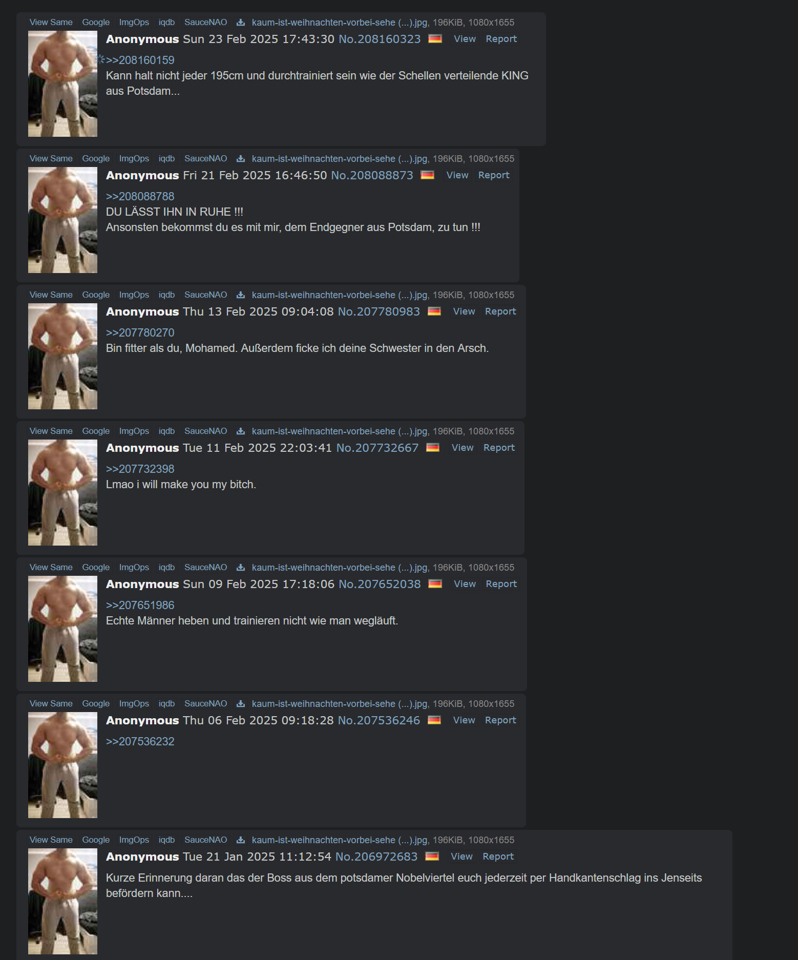 >>219919748Er ist das letzte das du siehst wenn du im Faden aufmüpfig wirst....