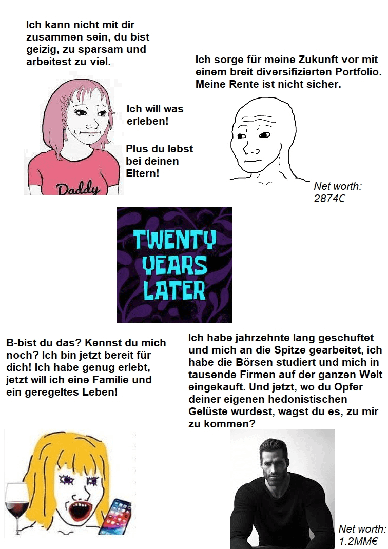 >>219922268Du hast den Begriff>Spielumgedeutet, "weiterentwickelt" wie ein entartetes Digimon. Von Pfatermon zu Paterpädämöngi.>Du bist der Krebs des FadensBildverwandt,Als der keionlerhassende Wahrheitspächter noch ungepirscht war. Das waren noch Zeiten.>und ich bin die Chemo.Chemotherapie leitet sich ab vom altgriechisch chymeia.Jedoch, die tiefere Herkunft von chēmeía/chymeia/Chemie, ist umstritten.Ferstehste. Umstritten. Kök.Paul Ehrlich prägte den Begriff im Jahr 1906 neu.Er verstand darunter die Behandlung von Infektionskrankheiten ohne den Wirtskörper zu schädigen.Jedoch, rein zufällig nach dem sogenannten 2.Weltkrieg hat man es wieder umgedeutet. Wirtskörper schädigen? Ja normal, allahverwallah!Jetzt ists "usus" (heh) dass man zur "Behandlung" den Leib mit "Schemträhls" zerbuxxed.Da kann man nur Beifall klatschen, als Hartwissenschaftler.Du rettest nichts, du heilst nichts (oh meine Güte, ich habe HEIL gesagt) sondern verstreust Gaben (Dialekt: Gift). Und was gabst du uns? Psychische Gewalt.Der Proto-Unbrudi war geboren und hat den Faden ins UnHEIL(!) gestürzt.Chemowaffen gegen die Brudis.Nicht mal Saddam der Husseine aus dem antiken Iraq hat das gemachtert. Schämt Euch!Hehe.Das Spiel des Lebens.