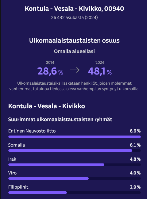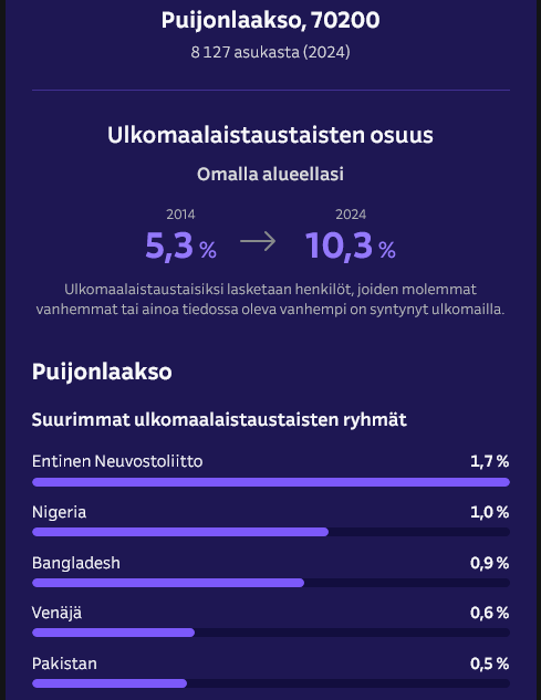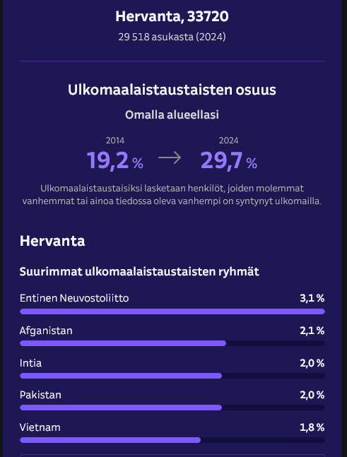 >>219925095siis hyi vittu miettikää jopa puijonlaaksossa joka kymmenes ihminen ei ole suomalainen aaaaaaaaaa