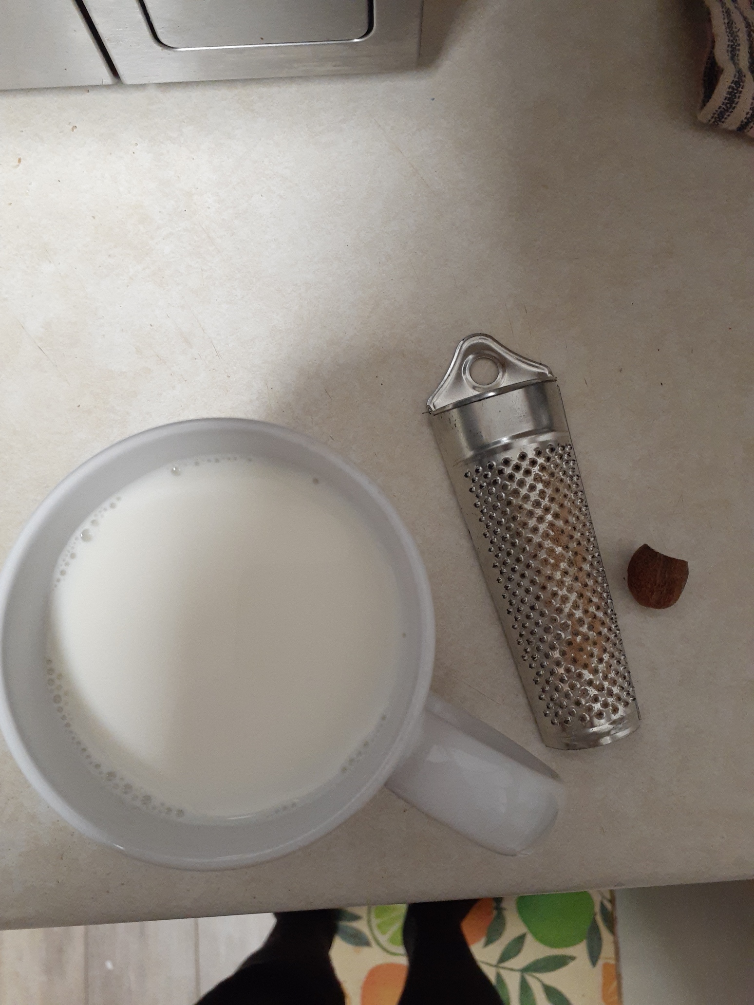 >>219923893Okay here's your hot milk and the nutmeg rasp. Gee the nutmeg in this milk sure makes it smell potent. Must be the fat in the milk working with the nutmeg oils or something