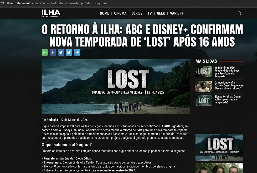 LOST vai ganhar um revival/nova temporada em 2027, espero que dessa vez expliquem o que a porra é a ilha. O elenco vai estar geriátrico.