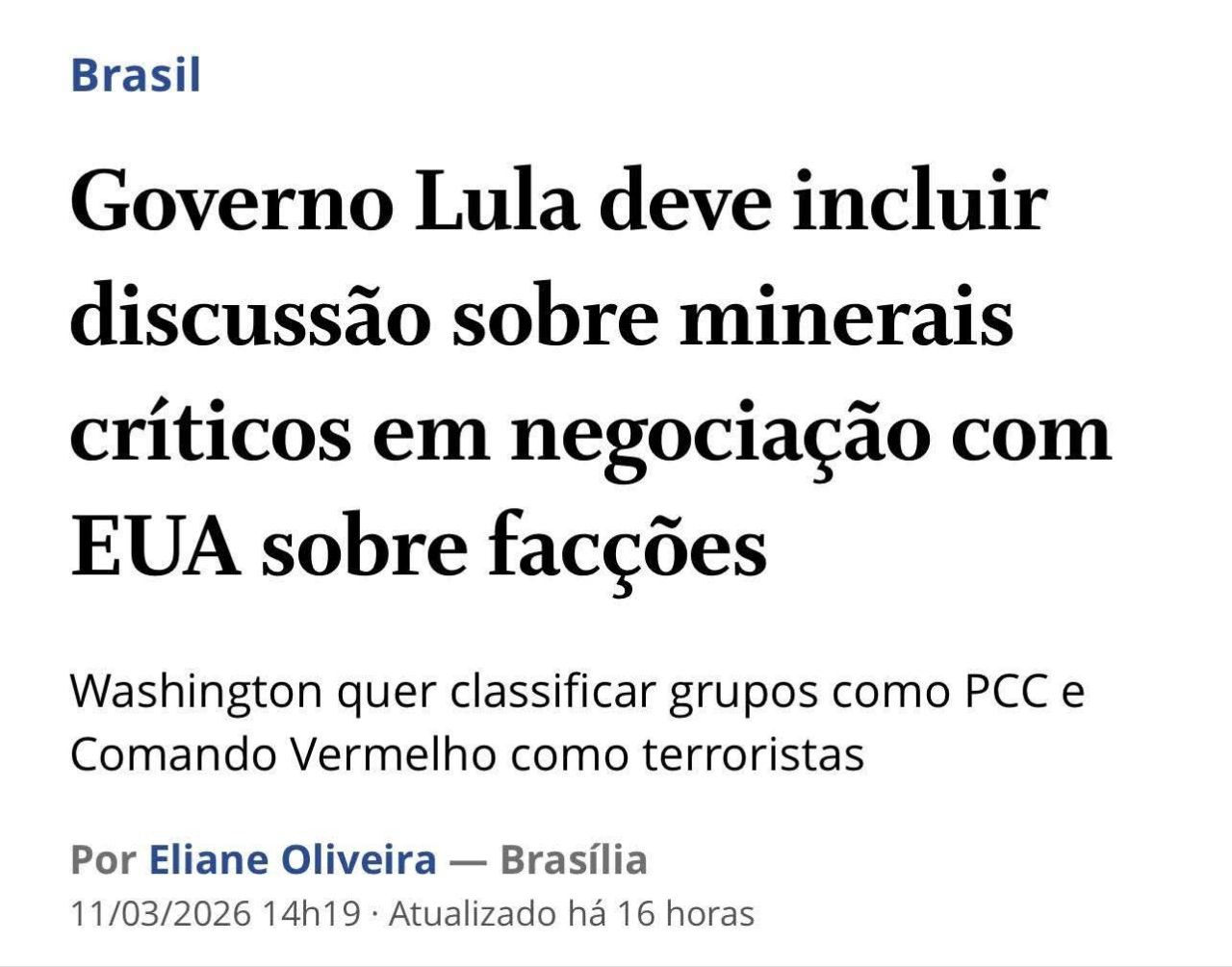 O PT vai entregar minerais raros ao EUA em troca de proteger PCC e CV kkkkkkkkkkkkkkkkkkkkkkkkkkkkkkkkkkkkkkkkkkkkkkkkkkkkkk