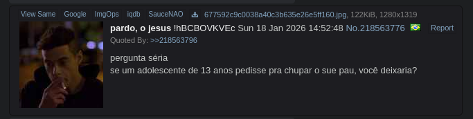>>219932624da pra entender porque ele é tão revoltado com a vida>>219932647por que o apelido dele é chupacu?