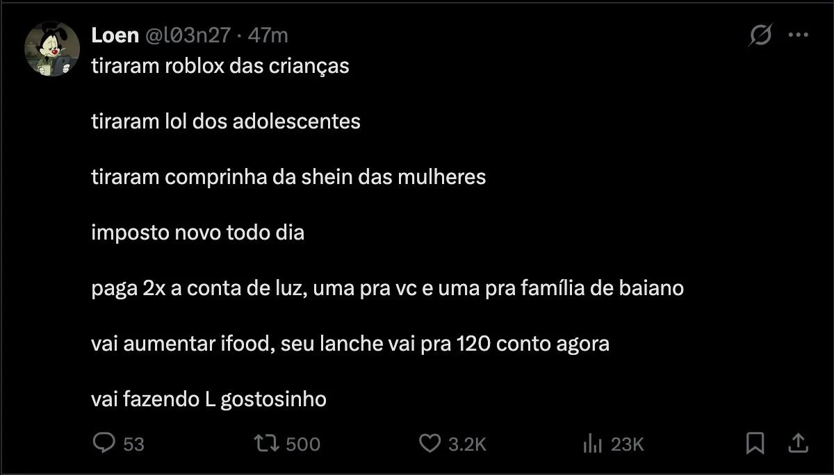 >>219944134O tópico virou basicamente um chat caótico entre anons, com várias conversas paralelas. Não tem um assunto principal claro.2 Brigas e zoaçãoUsuários ficam se xingando (chamando de fracassado, anão, velho etc.).Um cara fica postando muitas imagens de garotas de anime só para irritar quem odeia anime.Outros reclamam e chamam ele de millennial fracassado que não tem nada pra fazer.3 Conversas aleatóriasVárias discussões surgem ao mesmo tempo:um cara contando história da vida dele (trabalho em telemarketing, maconha, deu soco em colega e foi demitido)gente falando de tabaco e cigarroconversa sobre Pokémondiscussão sobre assédiogente reclamando de apps de namorogente falando de pornografia / masturbaçãogente pedindo mais imagens4 Política aparecendo no meioAlguns comentários políticos soltos:gente falando que Bolsonaro foi internado e está gravediscussão comparando Bolsonaro e Lulareclamações de “lacração”um cara com discurso anti-capitalista5 Spam de imagens e memesGrande parte do fio virou:gifsimagens aleatóriaswebmsmemesanime6 Clima geralO clima é:trollsshitpostironiadiscussões sem sentidoBasicamente o fio virou um chat bagunçado cheio de memes e provocações, sem foco. Resumo em uma frase:É só um fio do /bra/ cheio de shitpost, briga, anime, política jogada no meio e conversas aleatórias entre anons.Se quiser, também posso te explicar quem são os “personagens” recorrentes desse fio (tipo o “anão”, o cara do Pokémon, o anti-capitalista etc.), porque em boards assim geralmente são sempre as mesmas pessoas.