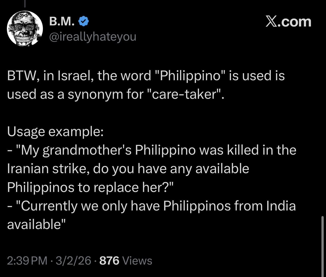 Spoken like someone who has never encountered a drunken Filipino uncle. I believe him.