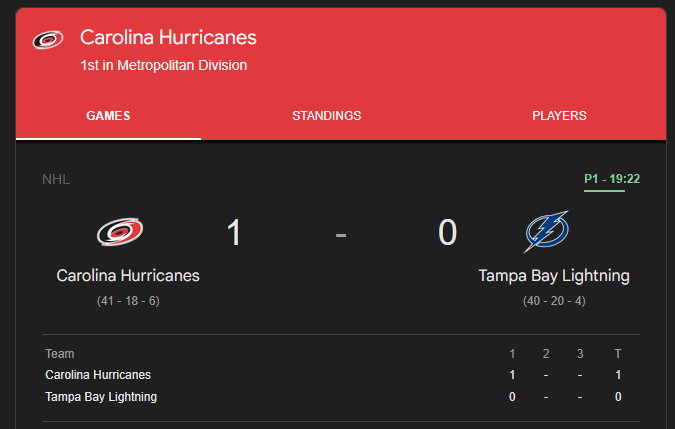 the canes gave up two goals the score is now tied 2-2
