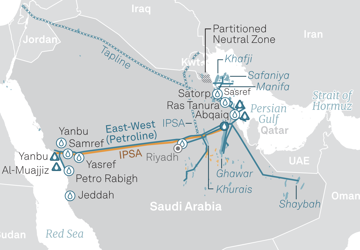 Why not simply use the East-West Pipeline in Saudi? Iraq, Kuwait, UAE, Qatar could get connected. Oil and natural gas piped to the Red Sea, then it can go into tankers and sail up Suez into the Med. That way it avoids the Strait of Hormuz and the Gulf of Aden.